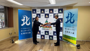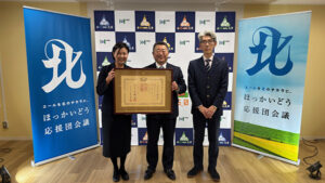 紺綬褒章は、各省各庁の長が内閣総理大臣に推薦し、内閣府省勲局が審査した上で受章者が決定するものです。今回は、企業版ふるさと納税(寄付)の功績を通じて、北海道庁から推薦を受け、受章が決定したものとなります。(褒章制度については内閣府のホームページをご覧ください。)